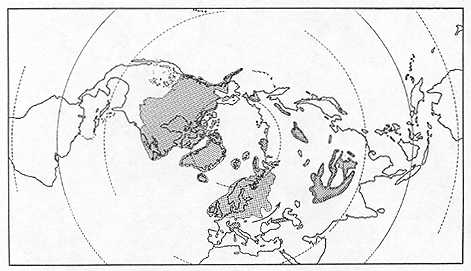 World pattern of glaciation in the northern hemisphere and central Asia being without a continental glacier. After Chamberlain and Salisbury. [[p. 148]] probably contemporary migration from the same center, a part of the general postglacial expansion of the Siberian fauna. It is not impossible that the "Völkerwanderungen" represent a late phase of this phenomenon, and in historic times the spread of the black rat and the brown rat suggest that it still continues. The resurge northward of the semi-tropical Chinese fauna with modification of the postglacial climate would add to the "faunal pressure" in eastern Asia. The Rocky Mountains, presenting a highway for the southward migration of northern forms, offer an effective barrier to the westward spread of the preglacial fauna of the southeastern United States. A further avenue of southward dispersal may have been a hypothetical corridor between the mountain glaciers of the Rockies and the western border of the great northeastern continental glacier. The circumpolar distribution of the more boreal forms is an allied phenomenon, but it seems likely that it depends on a number of other factors, and that ice floes may have played a part in the dispersal of life in this region. The circumpolar species of fresh water fishes (Esox lucius, the northern pike, Coregonus, the whitefish, Perca sp., the yellow perch, and the ling, Lota) contribute an item of evidence on the relatively recent existence of a closure of Bering Strait. The individuals of these forms in Europe, Siberia, and North America are either conspecific or so closely allied as to be scarcely distinguishable. They may have spread through coastwise marshes, or their dispersal may have been furthered by a freshening of the surface waters of the Arctic Ocean with the melting ice in spring, since fresh water tends to float on the oceanic salt water. In addition to the fairly clear cut evidence of an alliance between the west European and west American faunae, there are a large number of related forms that fall in line with the general argument, but appear to represent earlier phases of this wave of dispersal and, in some cases, perhaps, a parallel wave of much earlier date. The present distribution of the bisons may be instanced. The two living species are confined to western North America and Europe (the Carpathians and Caucasus), but there was a Pleistocene development in North America of rather numerous species, suggesting the expansion of a group in a newly occupied territory. The Rocky Mountain goat is perhaps related to the chamois, but the amount of difference between them is too great for any evidence of recent migration. The wild sheep of the Rockies and of the mountains of Asia do appear to be a part of a Pleistocene and recent dispersal. The Pacific Coast skink of western North America (Eumeces skiltonianus) agrees well enough with the hypothesis of a northern Asiatic origin, but its closest relatives are in southern China instead of in Europe. Emys, with a species in Central Europe and one in the mid-western United States presents a curious parallel with the bisons. The resemblance between the west European and west North American faunae thus seems to be essentially a relation based on a late Tertiary, Pleistocene, and Recent dispersal. I wish to discuss the second relation, between the animals of eastern North America and eastern Asia, in this connection because it presents a strong contrast with the first, as a much earlier series of migrations, probably in late Mesozoic and early Tertiary times, interchanging [[p. 149]] via the same Bering Strait bridge. For the consideration of this second problem the herpetological evidence is especially instructive. The faunae of eastern Asia and eastern North America present certain general resemblances in their composition. Both are rich in salamanders and in freshwater turtles of the family Emydidae. The still more aquatic soft-shelled turtles of the genus Trionyx are well represented. Of the groups of amphibians and reptiles now confined to these two regions (and found in both) the most important are the cryptobranchid salamanders, the crocodilian genus Alligator, and the spoon-billed sturgeons, Psephurus in China and Polyodon in the Mississippi. The two areas do not have any species of amphibians or reptiles in common, though it was long a commonplace of zoogeographic compilations to state that the common ground skink of the southeastern United States (Leiolopisma laterale) is indistinguishable from a similar form in China. Re-examination of this question with the ample material collected by Mr. Clifford H. Pope, of the Third Asiatic Expedition of the American Museum of Natural History, shows that the Chinese skinks that have been referred to Leiolopisma laterale fall into four or five distinct forms, and all of them are distinguishable from the American species, though the Yangtze valley species (L. modestum) and the northernmost form (L. septentrionale) approach it rather closely. The difficulty had been with the lack of ample series and the want of conspicuous characters on one hand, and the general conservatism of the scincid lizards on the other. The related groups in the two areas may be examined more in detail. The Cryptobranchidae are represented by Cryptobranchus in eastern North America and by Megalobatrachus in China and Japan. The differences between the two genera are not great, but neither are they widely distinct from a fossil species (Andrias scheuchzeri) in the Oligocene of Europe. It is evident that the group is an ancient one and that the close resemblance between the three forms is due to conservatism rather than to a recent origin of the group. In general structure, and in the fact that fertilization is external, the group is distinctly primitive. The newt fauna (Triturus) of the two areas is poor when compared with that of Europe, where the newts have undergone an expansion comparable with that of the Hynobiid