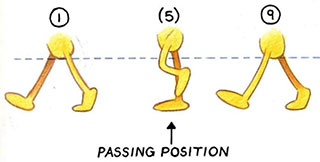 - Note that the height of the two inbetween body positions falls naturally between the extremes and the passing position.