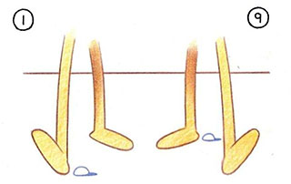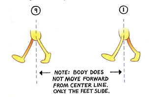 - Similarly, drawing 7 is placed between (5) and 9. This time, however, the heel of the free leg must contact the ground ahead of the heel in extreme 9 (the same amount as the slide-back distance on the contact foot).