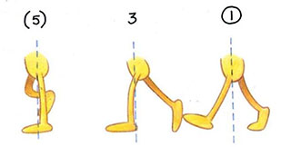 - Now the inbetween positions are put іп, based on the same principles. The body of drawing 3 is midway between 1 and (5), while the foot slides back to midway between the two.