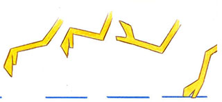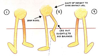 - То complete the illusion of movement, the background has to be panned through the scene at identical distances to the slide distances of the contact foot, which should be equal in each drawing.