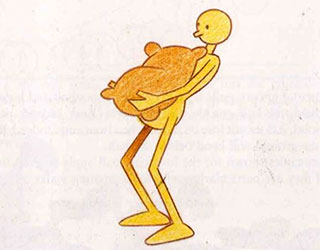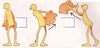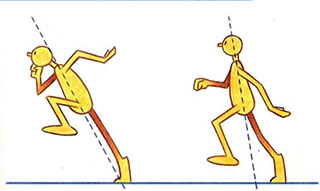 - Notice the tremendous lean backward, which is necessary to compensate for the added weight so that the character appears balanced. If the man did not lean back, he would be pulled forward and would fall flat on his face. The general rule is that the more weight there is, the more the body position has to change to compensate for it. If the weight is tremendously heavy, then a bend in the legs may also be necessary to accentuate the illusion of great weight.