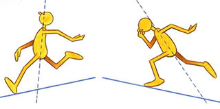 - Where the figure is running is another consideration. If the figure is running downhill, he will lean back slightly and open his arms more, to help brake his speed. If he is running uphill, however, he will lean forward and drive his arms harder, to give him the added impetus to get up the hill.