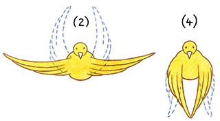 - Bird wing positions: There are traditionally four basic positions for a flying bird. The two most obvious are the wings-up and wings-down positions.