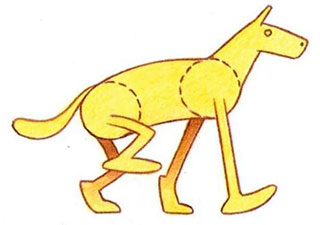 After the legs and linking body are completed, it is a simple matter to add the head and tail. The head and neck will react to the general action of the front legs, so normally you might expect to see the head move up as the shoulders move down, and down as the shoulders move up again. In the same way, the tail tends to flick down as the haunches move up, and up as the haunches go down. But since rules are made to be broken, you can and should use your imagination to bring some originality into the action.