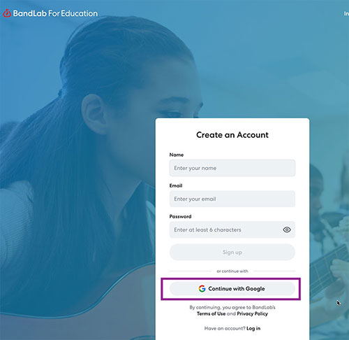 - Click "Continue with Google" if you already have a Google account, or make a BandLab account.